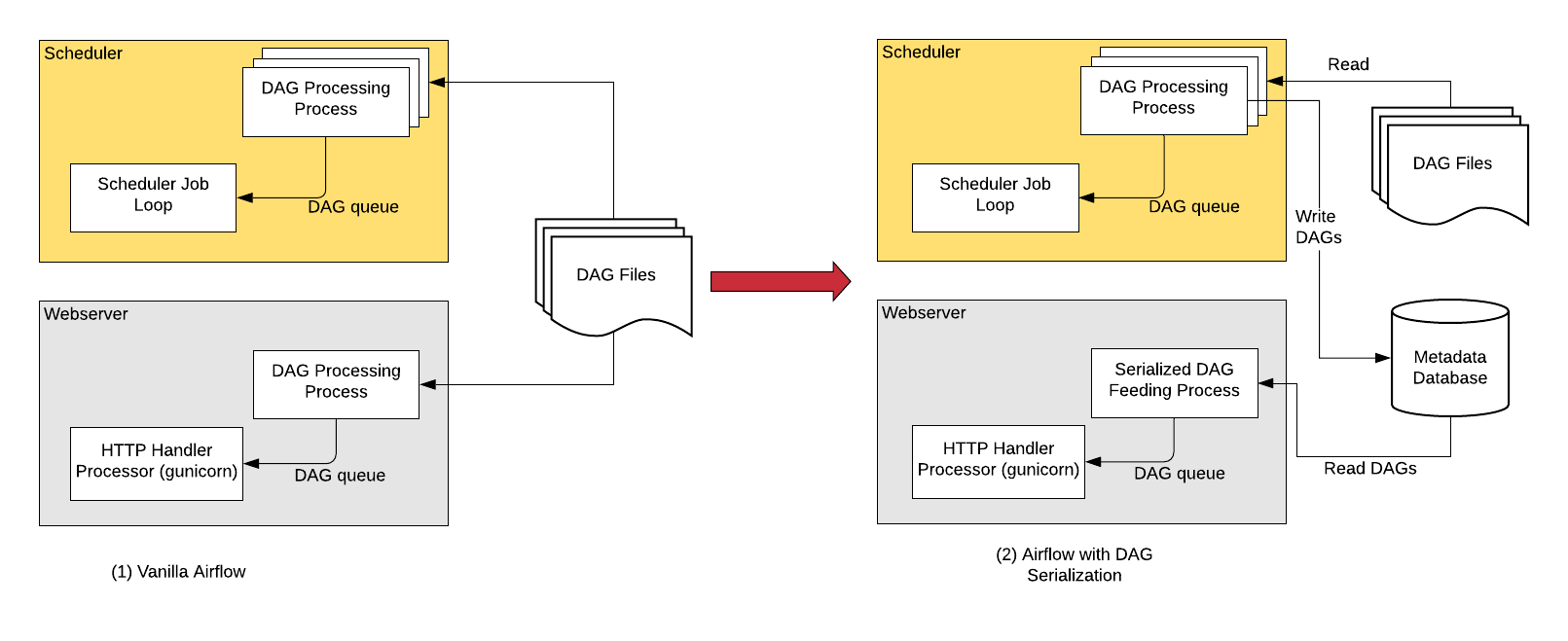 Without DAG Serialization & persistence in DB, the Webserver and the Scheduler both needs access to the DAG files. Both the scheduler and webserver parses the DAG files.