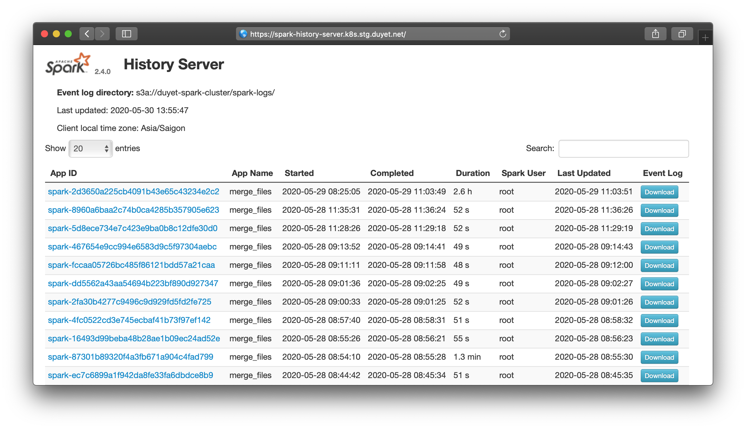 $ helm install -f values.yaml stable/spark-history-server --namespace spark-history-server