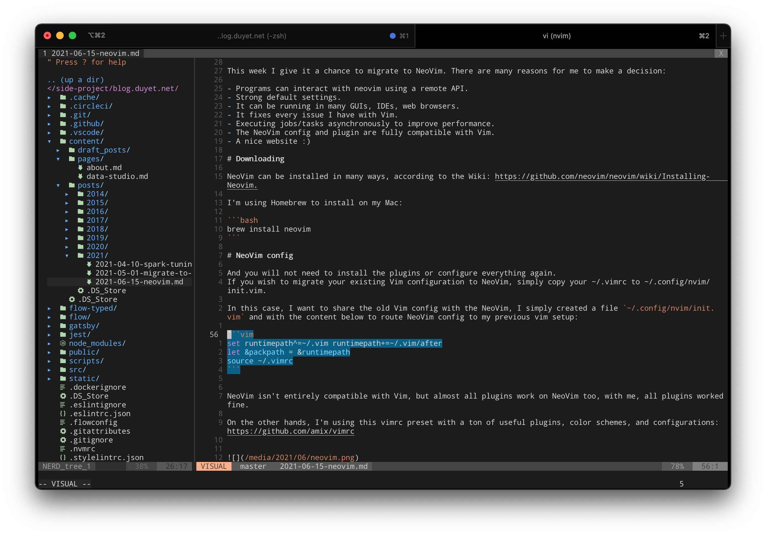 This week I give it a chance to migrate to NeoVim. There are many reasons for me to make a decision: