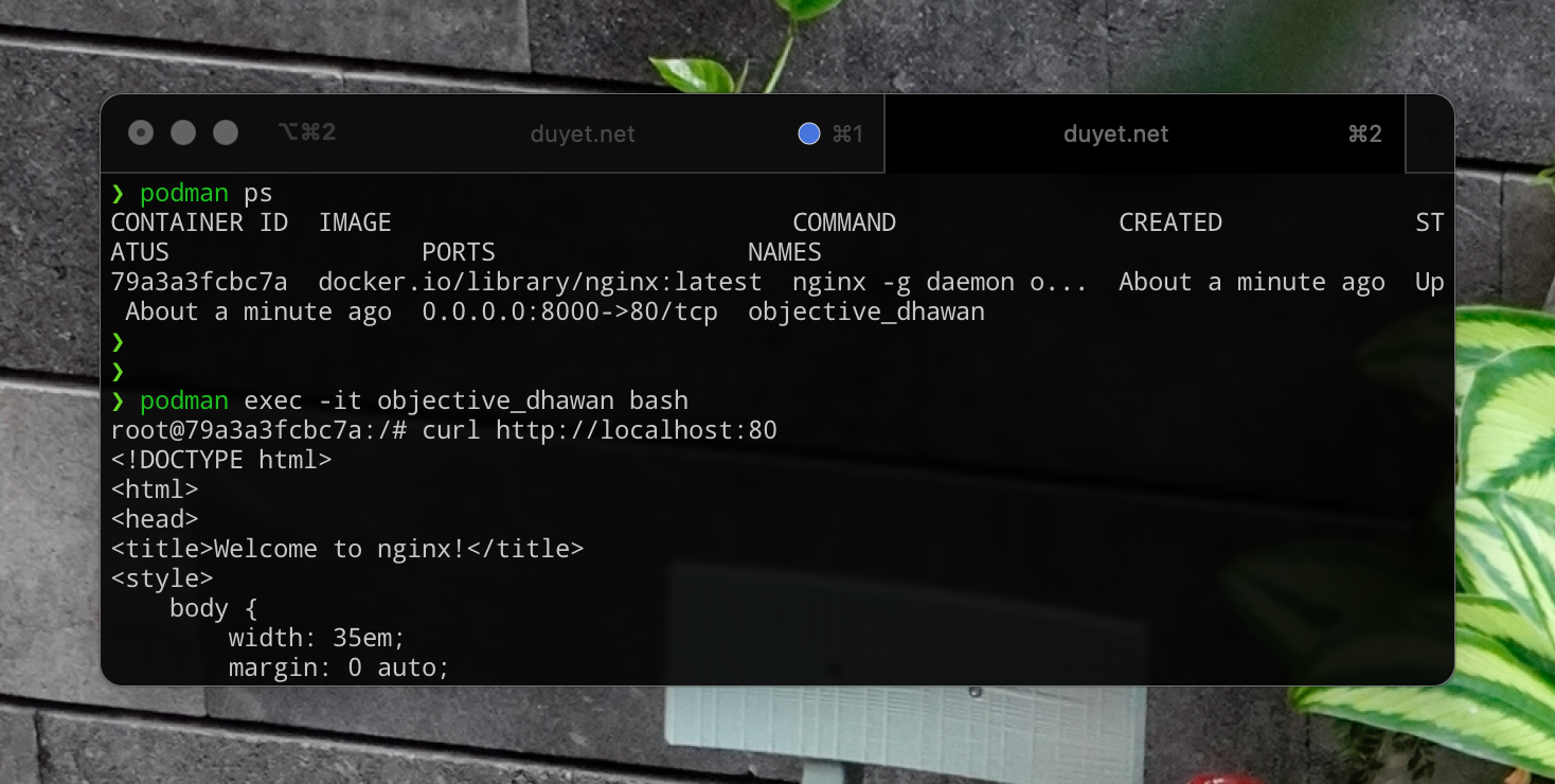 podman run --rm -it --publish 8000:80 docker.io/library/nginx:latest
